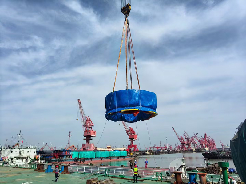| CMEC承接荷蘭TMS公司設(shè)計(jì)松大生產(chǎn)的風(fēng)電發(fā)電樁柱海上運(yùn)輸工具樁塞今天順利裝船發(fā)運(yùn),前往荷蘭 |